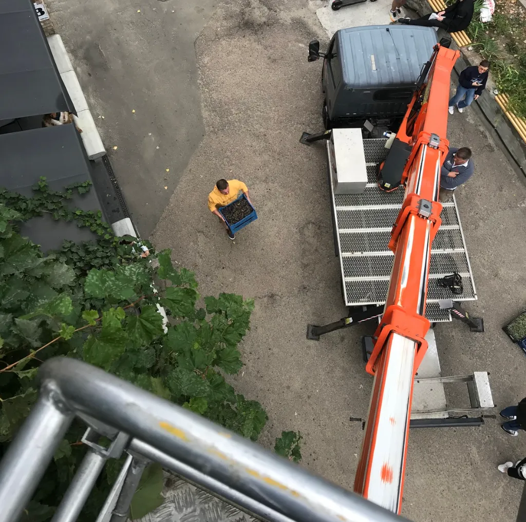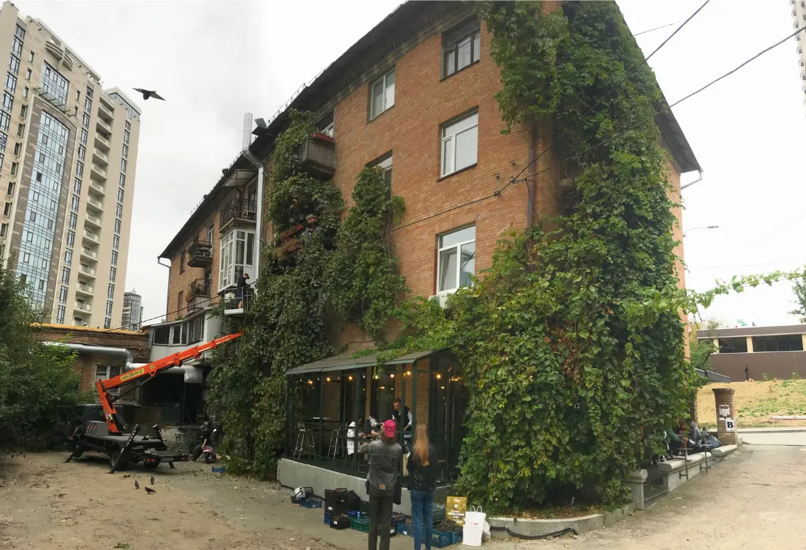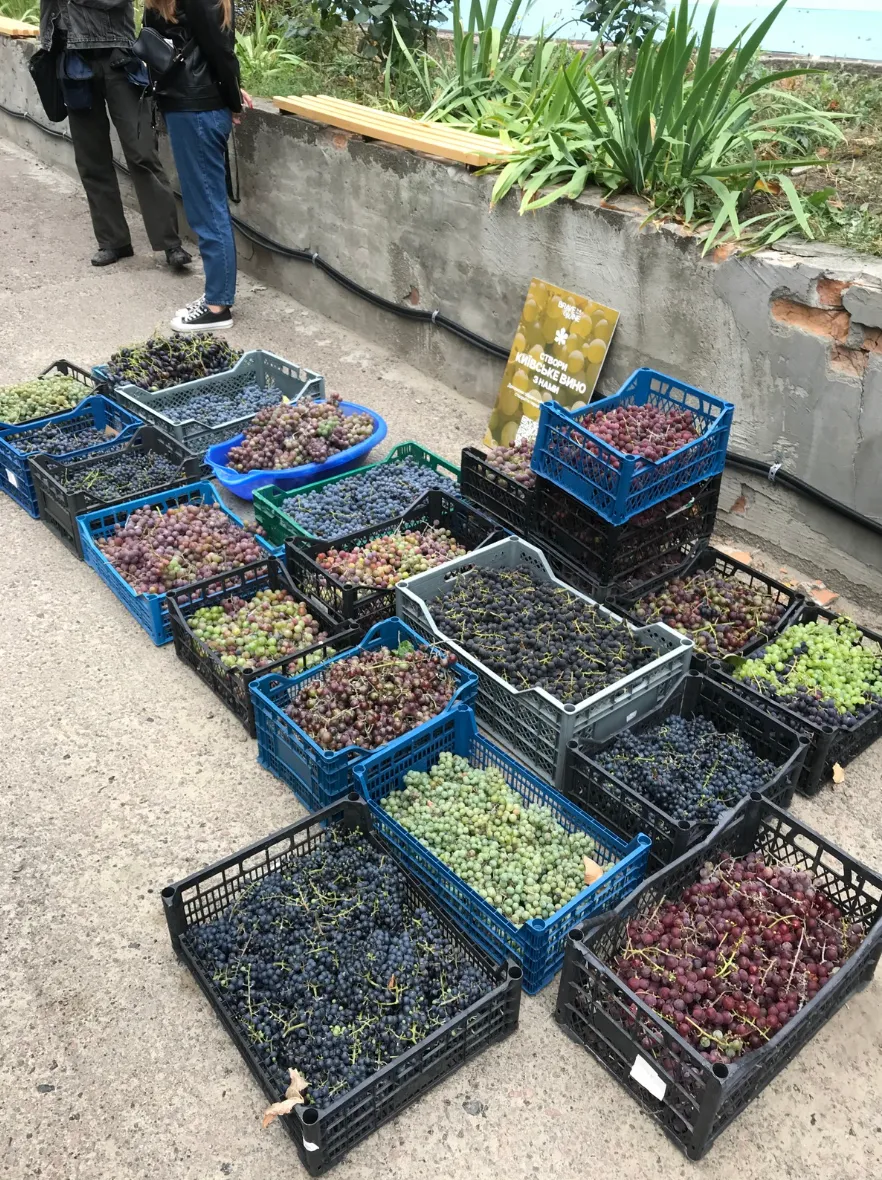Sergiy went to his favorite restaurant "Dubler" and by a happy coincidence the restaurant building is surrounded by vines on all sides. He talked to the owner and managing partner, got their approval, and wrote a post on social media about his idea with a date when he would be ready to pick up all the grapes that people would gather from the vines in Kyiv and bring them to him.